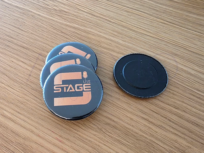 - Metallic round button magnet.